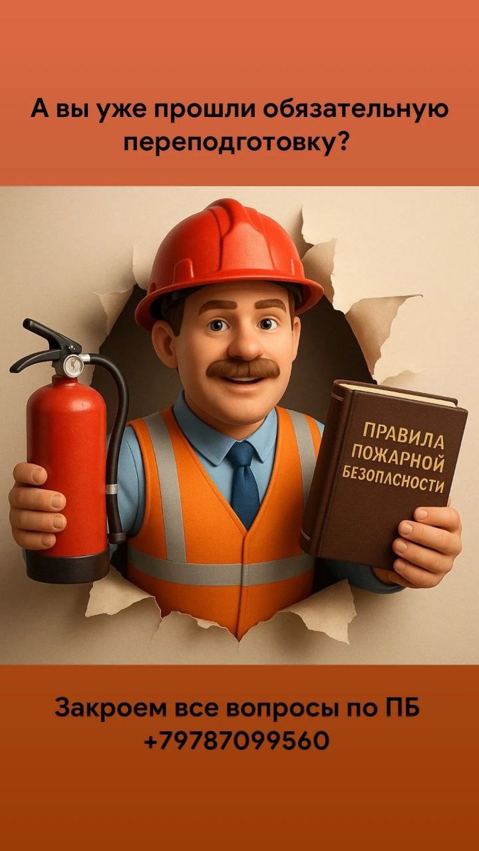 🤔Можно ли отложить обучение по пожарной безопасности? Вы уже знаете, что с 1 марта 2025 года действуют новые требования к обучению по пожарной безопасности. ❗️Но многие до сих пор не начали процесс — из-за отсутствия бюджета, согласований или других причин. Отложить обучение — значит рисковать: ➖ штрафами до 400 тыс. рублей ➖ приостановкой деятельности ➖ уголовной ответственностью для ответственных лиц в случае инцидента ✅ Мы готовы помочь вам разобраться, кого именно нужно обучать и по каким программам, чтобы не тратить деньги впустую и соответствовать закону. И главное, чтобы обучить именно тех, кого необходимо. ☝️Ведь пройти профпереподготовку на Специалиста по пожарной профилактике может далеко не каждый. Получите бесплатную консультацию с экспертом ➡️ +79787099560 biz@teus-company.com Teus-company.com/obrazovanie