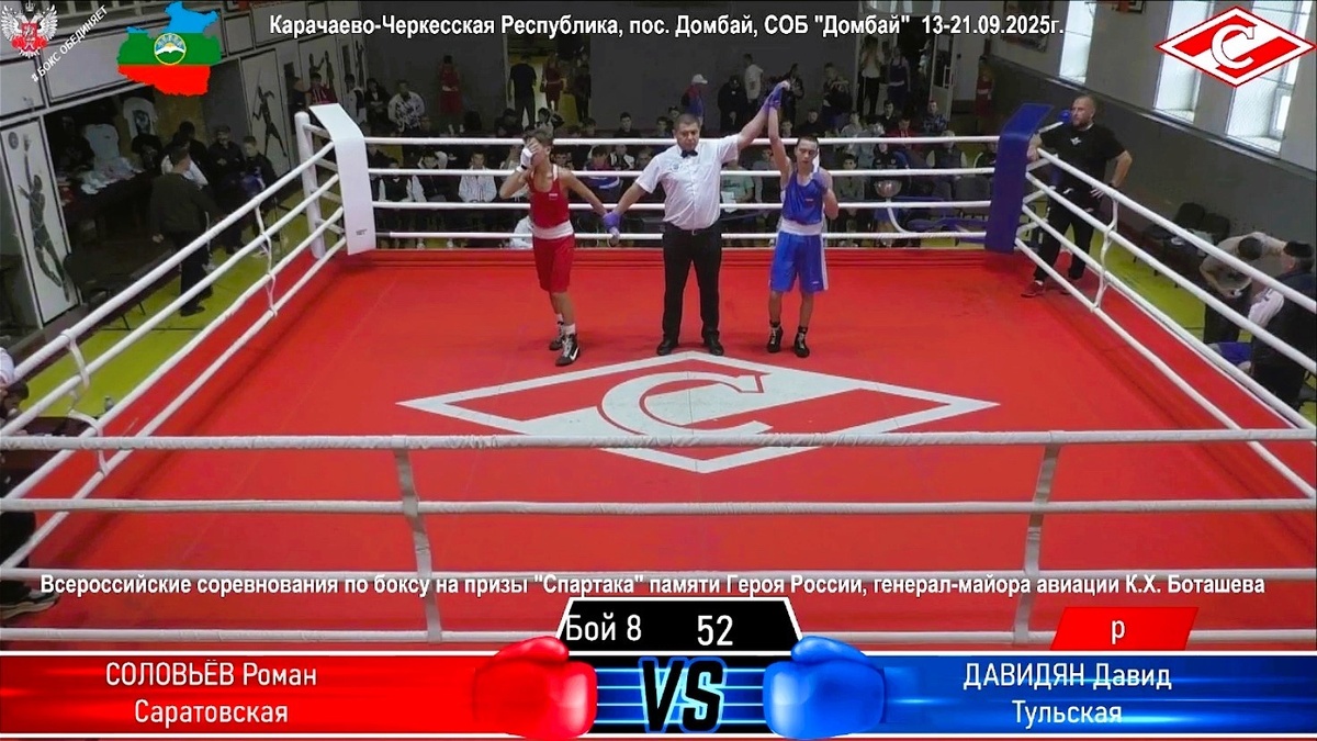 Егор Подосёнов и Давид Давидян вышли в финал Всероссийских соревнований по боксу на призы «Спартака» среди юношей 14-15 лет. Этот традиционный турнир, посвящённый памяти генерал-майора авиации, Героя России Канамата Боташева проходит в посёлке Домбай Карачаево-Черкесской Республики. В пятницу, 19 сентября, в полуфинальных боях тульские боксёры одержали победы в своих весовых категориях: Егор Подосёнов в категории до 50 килограммов победил Магомеда Улубейли из Волгоградской области, а Давид Давидян в весе до 52 килограммов был сильнее Романа Соловьёва из Саратовской области. В финале турнира Егору Подосёнову предстоит бой с Дамиром Пшуковым из Кабардино-Балкарии, соперником Давида Давидяна стал Илья Наливайко из Ставропольского края. Финальные поединки состоятся в субботу, 20 сентября. Руководите нашей командой на этом турнире тренер Вячеслав Яковлев.