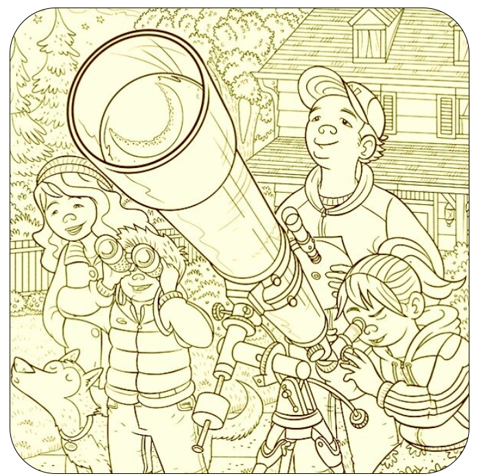 Но папа, хитро улыбаясь, объясняет, что магия телескопа раскрывается только с наступлением ночи. Именно тогда просыпаются звёзды, а Луна показывает все свои шрамы-кратеры. Честно говоря, я бы и сам на месте детей сгорал от нетерпения до вечера!