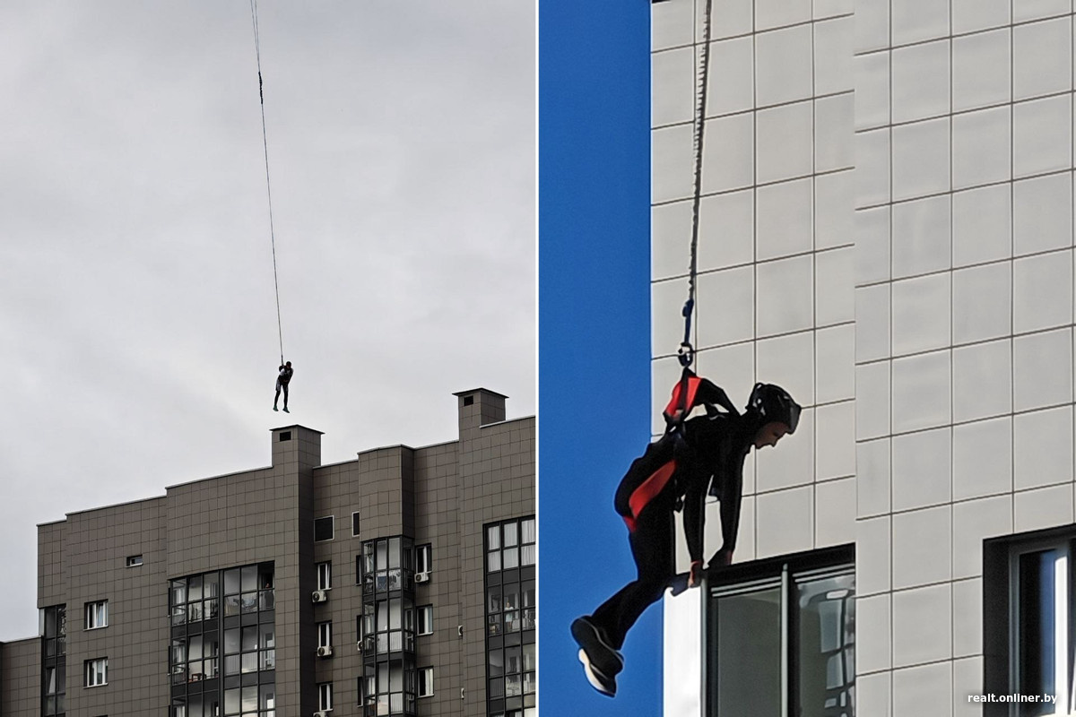 Бодрящие нервы ролики разошлись вчера, кажется, по всем соцсетям: с крыши самого высокого жилого дома в Минске спрыгнул человек. Со специальной веревкой, конечно. Но все равно выглядело это волнительно. Кто он? Зачем это сделал? Будет ли прыгать еще? Мы узнали ответы на все вопросы. Вчерашний «перформанс» — не самодеятельность. Прыжок был согласован и подготовлен профессионалами. Отрывались на крыше «Лазурита» белорусские каскадеры. — Мы делали ролик для Гильдии каскадеров, хотим привлечь на белорусский рынок китайских кинематографистов, — объясняет старший риггер Гильдии каскадеров Республики Беларусь Дмитрий Войтенков. — За рубежом зачастую думают, что в Беларуси нет серьезных каскадеров, которые могут делать сложные трюки, но это не так. С помощью ролика мы как раз планируем показать свой уровень. Выйти на китайский рынок. «Лазурит» как высшую (пока) точку столицы каскадеры приметили еще зимой, когда в Минске проходили съемки российского фильма. Тогда локация все же не попала в кадр