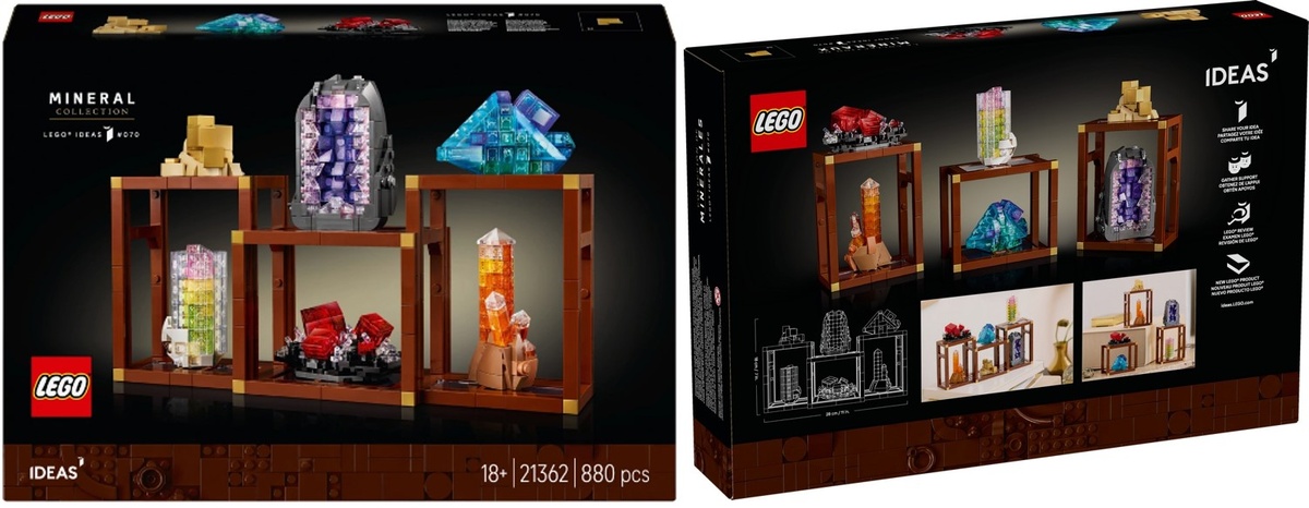 Привет, друзья! Сегодня хочу поделиться с вами необычным релизом от LEGO — набором Mineral Collection 21362. Признаюсь честно, когда впервые увидела анонс, у меня возникло смешанное чувство. В 2025 году компания выпустила набор, который позволяет собрать целых 6 минералов из деталей конструктора. В комплекте 880 деталей, из которых можно создать: Кроме самих минералов, в наборе есть модульная витрина под дерево, которую можно собирать разными способами. Дизайн набора действительно впечатляет. LEGO удалось создать довольно реалистичные модели минералов, особенно учитывая, что они сделаны из пластика. В наборе появились новые полупрозрачные элементы и интересные детали, которые раньше использовались в других сериях. Честно говоря, как человек, увлекающийся натуральными камнями, я немного скептически отношусь к этой идее. Вот почему: Однако я понимаю, что у этого набора есть своя целевая аудитория: Если вы истинный фанат LEGO или ищете оригинальный подарок для ребёнка, который интересуетс