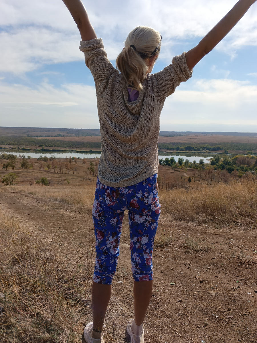 Всем приветик, сегодня мы путешествовали вдвоем. Убрали возле памятников и решили пройти к Обелиску Вот подсадила я мужа на сбор шиповника ) Теперь мы не можем пройти мимо ни одного куста Спугнули крупного зайца. Такого, что лапой даст, мало не покажется ) Еще нам навстречу с дач ринулась собака Баскервилей с кроссовкой в зубах ) Я боюсь собак. Не знаешь никогда, что у них в голове. А уж когда они размером почти с тебя... Видно было, что пес к нам настроен дружелюбно и бежал хвастаться, но все равно страшно было. Такой перекусит и не заметит. Вот такие вот приключения Потом я по привычке поехала на велике на дачу, но устала. Немного почитать -отдохнуть там не получилось, потому что мелкие приставучие мухи не давали расслабиться и отдохнуть. Выкопала крупную картошку там, где вообще не ожидала...Посадила этот кусочек поздно и муж его не поливал. И вот смотрите, сорт Родригес Сделала вывод, что рано сажать плохо, а картошка такая, потому что два раза полили вовремя плюс под яблоне