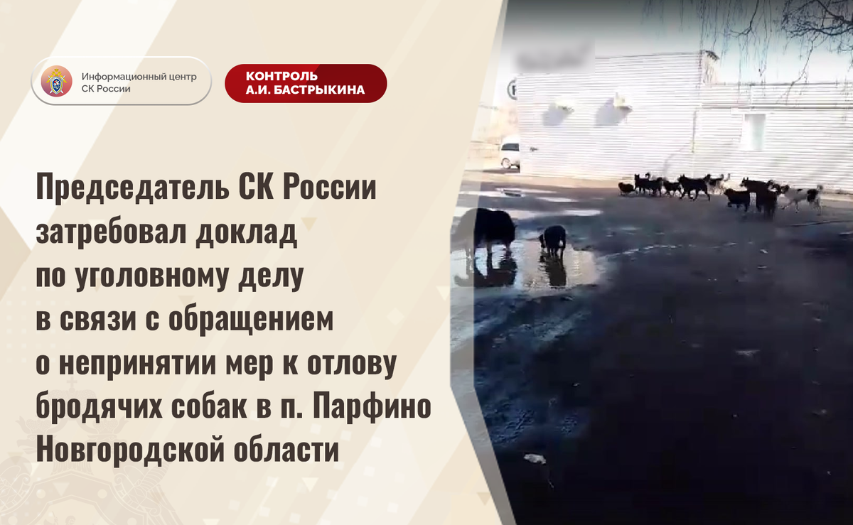 Председатель СК России затребовал доклад по уголовному делу в связи с обращением о непринятии мер к отлову бродячих собак в п. Парфино