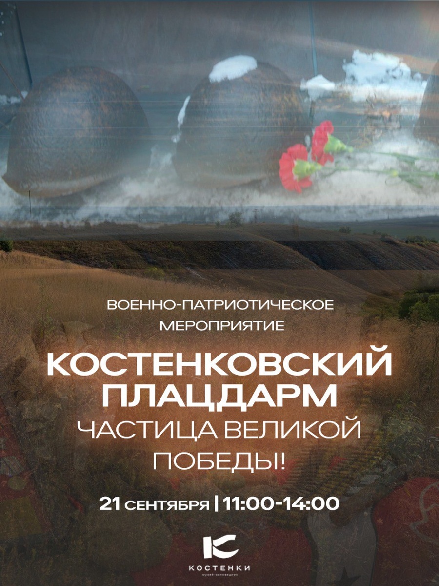 21 сентября музей-заповедник «Костенки» совместно с клубом «ПЕРЕСВЕТ» проведет военно-патриотическое мероприятие «Костенковский плацдарм – частица Великой Победы». Программа посвящена героическим страницам истории России и связи поколений защитников Отечества. Программа мероприятия: Мероприятие предлагает уникальную возможность прикоснуться к живой истории, понять связь между подвигами прошлого и настоящего, а также почтить память защитников Родины.