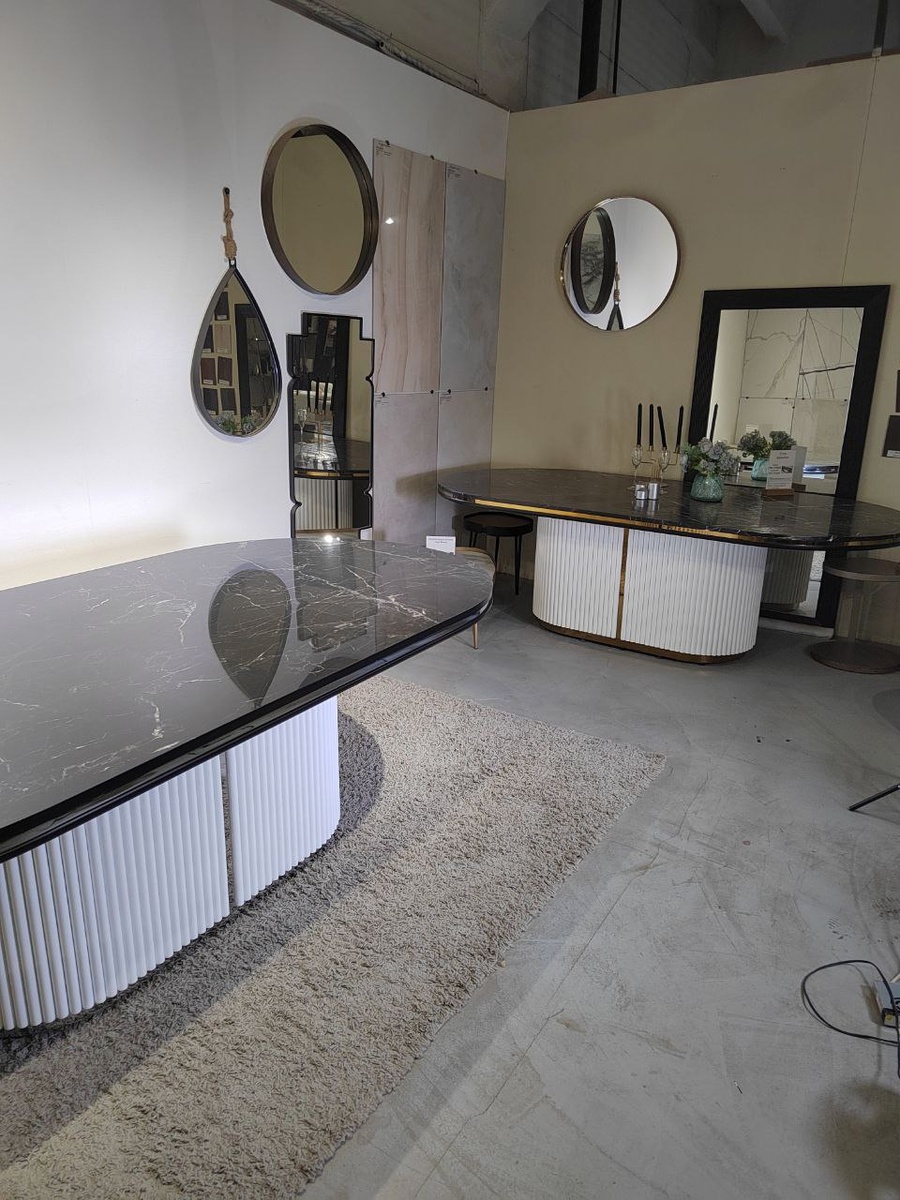 У нас в наличии есть большой мраморный стол Дорогой в размере 240х120 см Сейчас мы его повторили для заказчицы с керамогранитом и не в золоте а Глянцевое серебре И вот такая красота у нас получилась Стоимость мраморного в наличии 528 275 руб Стоимость с керамогранитом 307 205 руб Стол выполнен на заказ . Пишите нам на вацап 89099070387