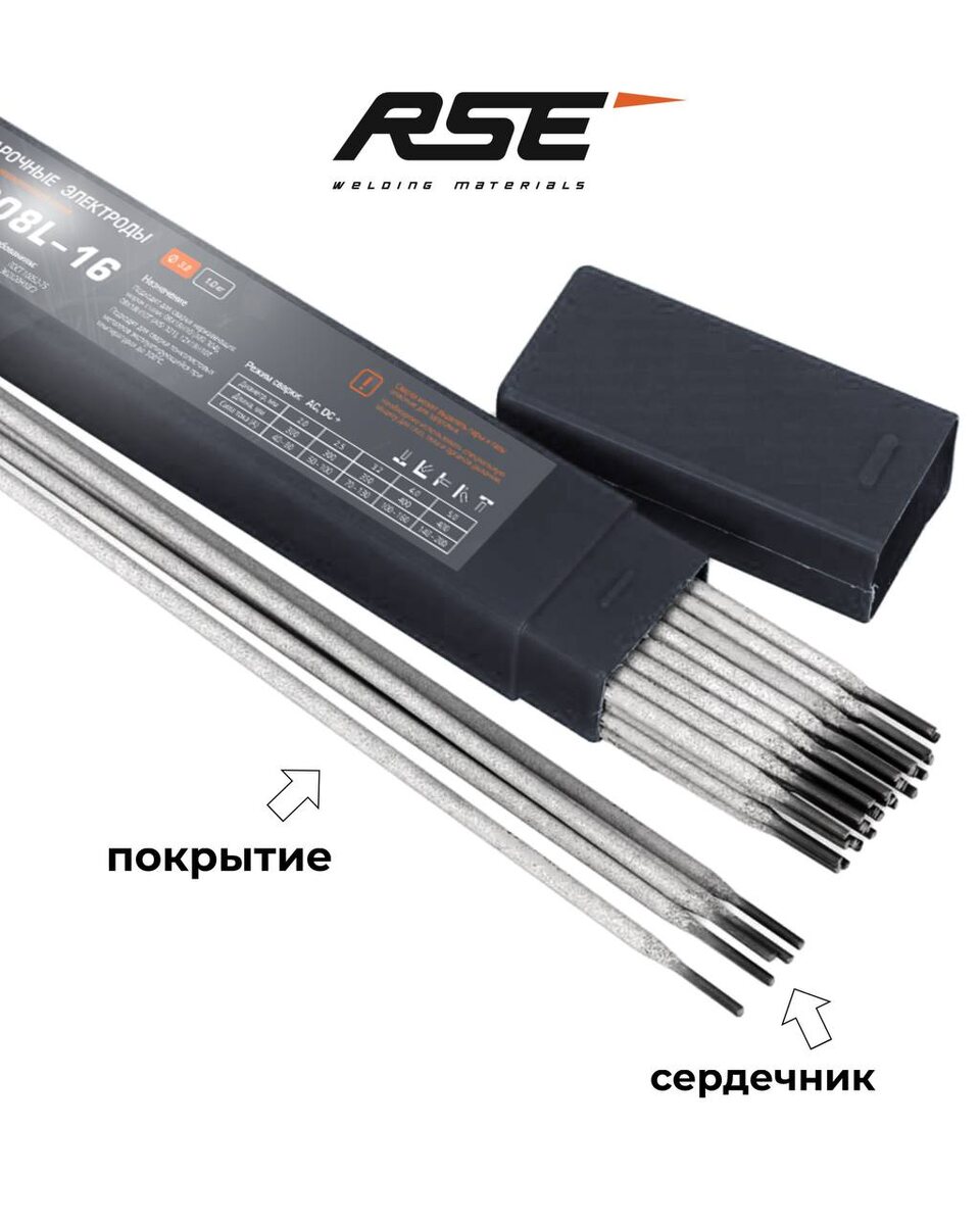 Из чего сделан электрод? Электрод – это ключевой расходный материал в сварке, который подаёт ток в дугу и одновременно служит присадочным металлом для формирования шва. Электрод состоит из двух основных частей: 1. Металлический сердечник (стержень) Он плавится во время сварки и становится основой сварного шва. Из чего сделан: Состав соответствует или близок к составу свариваемого металла. – Сталь (для сварки сталей – углеродистая, легированная, нержавеющая и т.д.) – Чугун, медь, алюминий, никель и их сплавы – для сварки соответствующих материалов. Примеры: • Электроды S-46 - стержень из низкоуглеродистой стали • Электроды ST 308L-16 - стержень из нержавеющей стали • Электроды RS-Z308 - для чугуна, с никелем в составе 2. Покрытие (обмазка) Слой специальных веществ, который выполняет сразу несколько задач: • защищает металл от кислорода и влаги; • стабилизирует дугу; • формирует газовую и шлаковую защиту; • улучшает качество шва. Из чего сделано: Смесь минералов, органических и