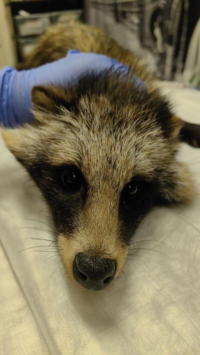 Ветеринары центра реабилитации диких животных «Сирин» борются за жизнь енотовидной собаки, которую доставили к ним в крайне тяжелом состоянии.