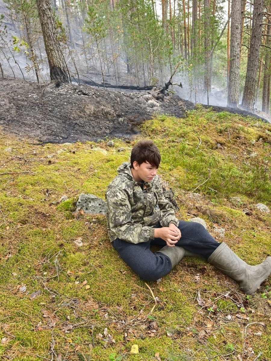 Юный спасатель принял участие в тушении огня в Ладожских шхерах