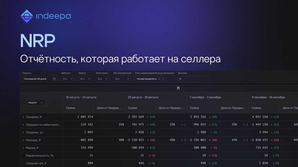 Unit P&L (один из инструментов NRP) открыт для всей команды: менеджер видит только свои категории и отчитывается за них, а РОП может одним кликом снять фильтры и показать картину по всему магазину.