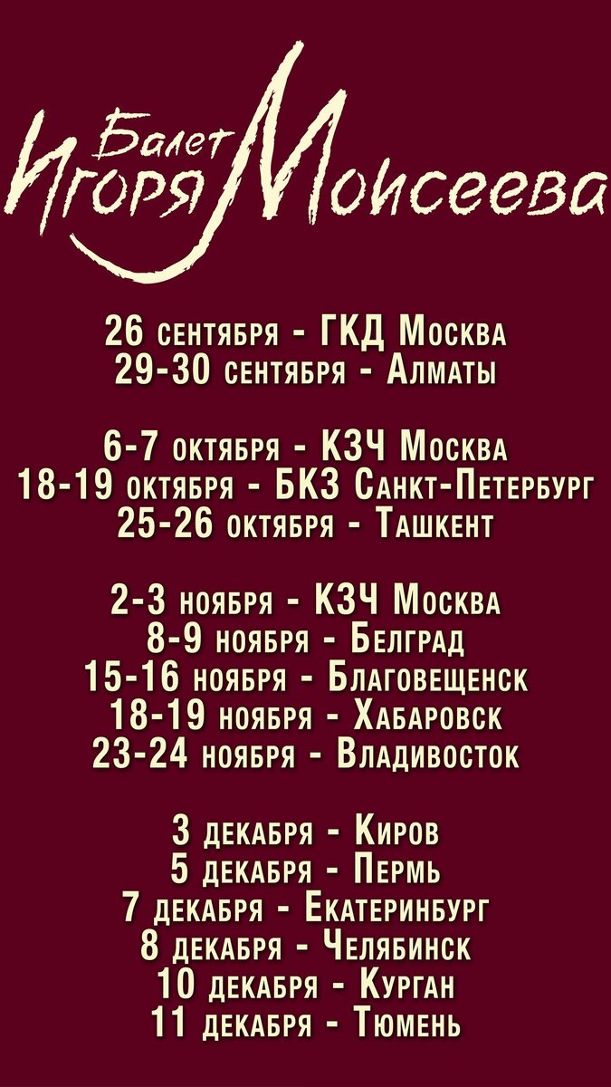 🗓 В афише — концерты в Москве, Санкт-Петербурге, Алматы, Ташкенте, Белграде, Хабаровске, Владивостоке, а также в крупнейших городах Урала и Сибири.