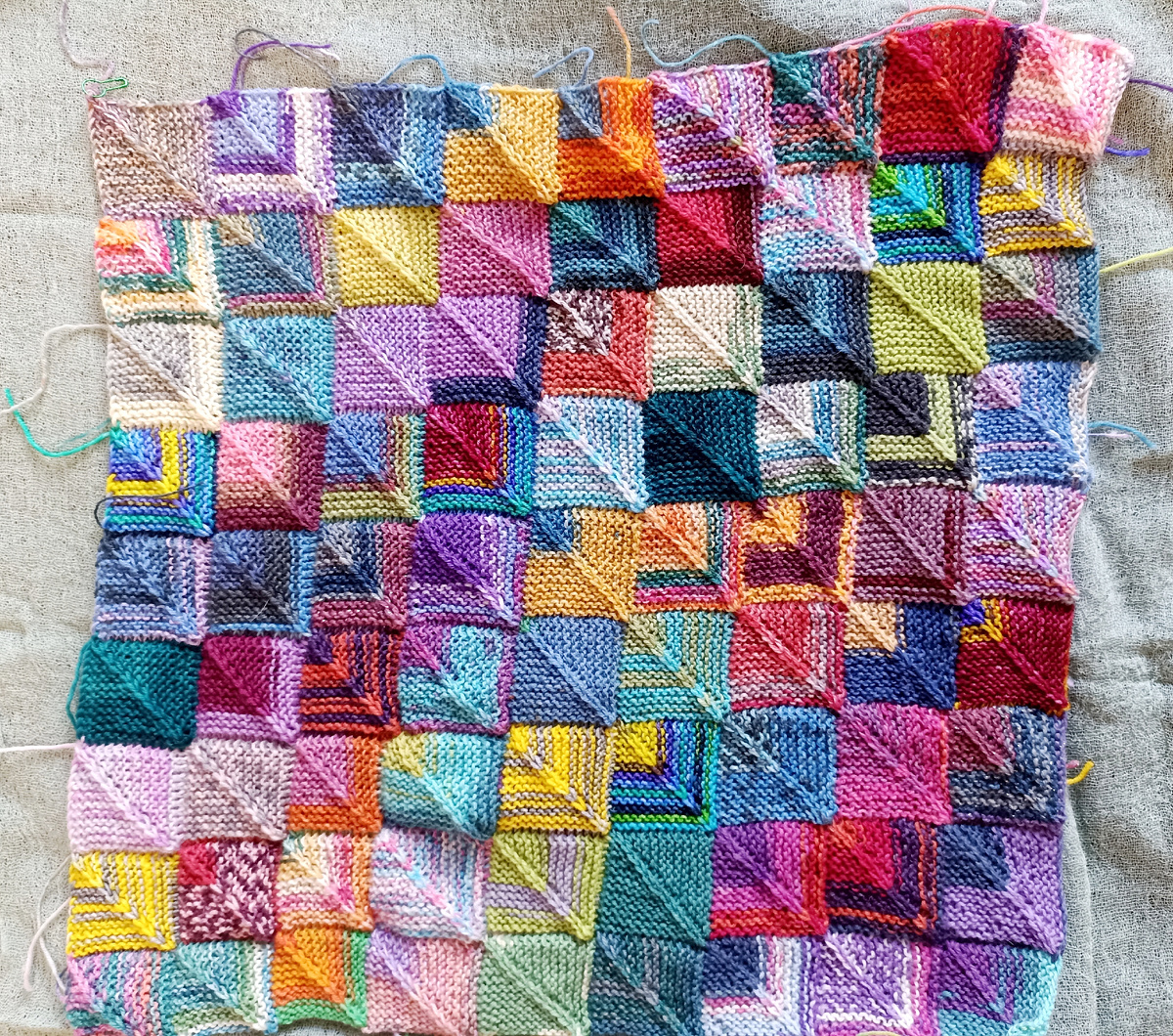 Единственный процесс, который хоть чуть-чуть продвинулся за эти полгода - плед квадратами из остатков носочки под кодовым названием "ай-на-нэ плед".