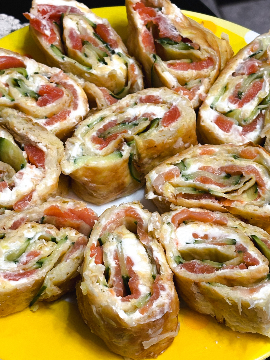 Делюсь рецептом ооочень вкусной и сытной закуски,делала на днях-улетела за полдня🤗Знаю,что у многих ещё кабачки идут на грядках,тогда этот рецептик точно для вас! Итак,нам нужно: -2 молодых кабачка -2 яйца -4 ст.л.муки -соль,перец по вкусу -большая упаковка творожного сыра -400 гр. любой красной рыбы -огурец Кабачки натираем на терке,солим,оставляем на 10 минут.Затем,хорошо отжимаем наши кабачки от выделившейся жидкости.Можно руками,но мне удобнее через марлю. Добавляем соль,перец,2 яйца и муку.Готовое кабачковое тесто выкладываем на силиконизированный пергамент.Отправляем в разогретую до 180* духовку на полчаса.Пока наша основа запекается,подготавливаем начинку… Тоненько нарезаем рыбу и огурец слайсами.Основа запеклась,даём ей полностью остыть.Смазываем творожным сыром,выкладываем рыбку и огурец.Плотно закручиваем в рулет,оборачиваем пищевой пленкой и в холодильник на 3 часа. Это очень вкусно,даже сразу и не понять,что блюдо с кабачками🤌😍