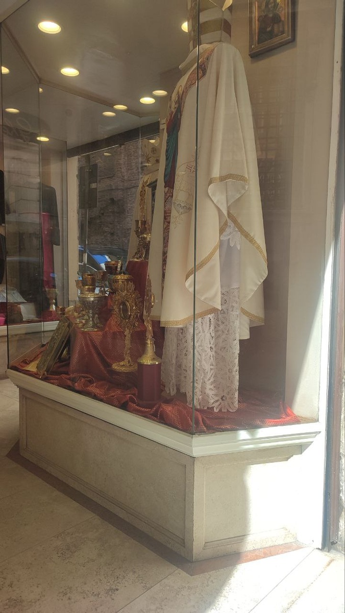 Магазин нарядов для священников. Не спрашивайте про кружево🙈 Понятия не имею, зачем такая красота.