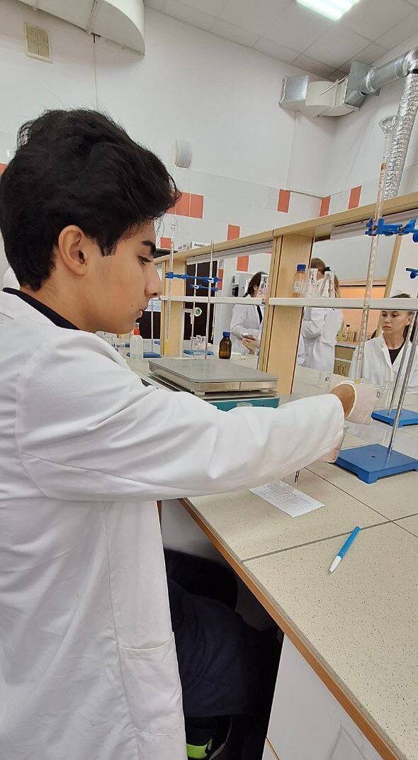 учащиеся 8 «Б» класса посетили мастер-класс «Азы химического анализа — титрование» в Российском химико-технологическом университете им