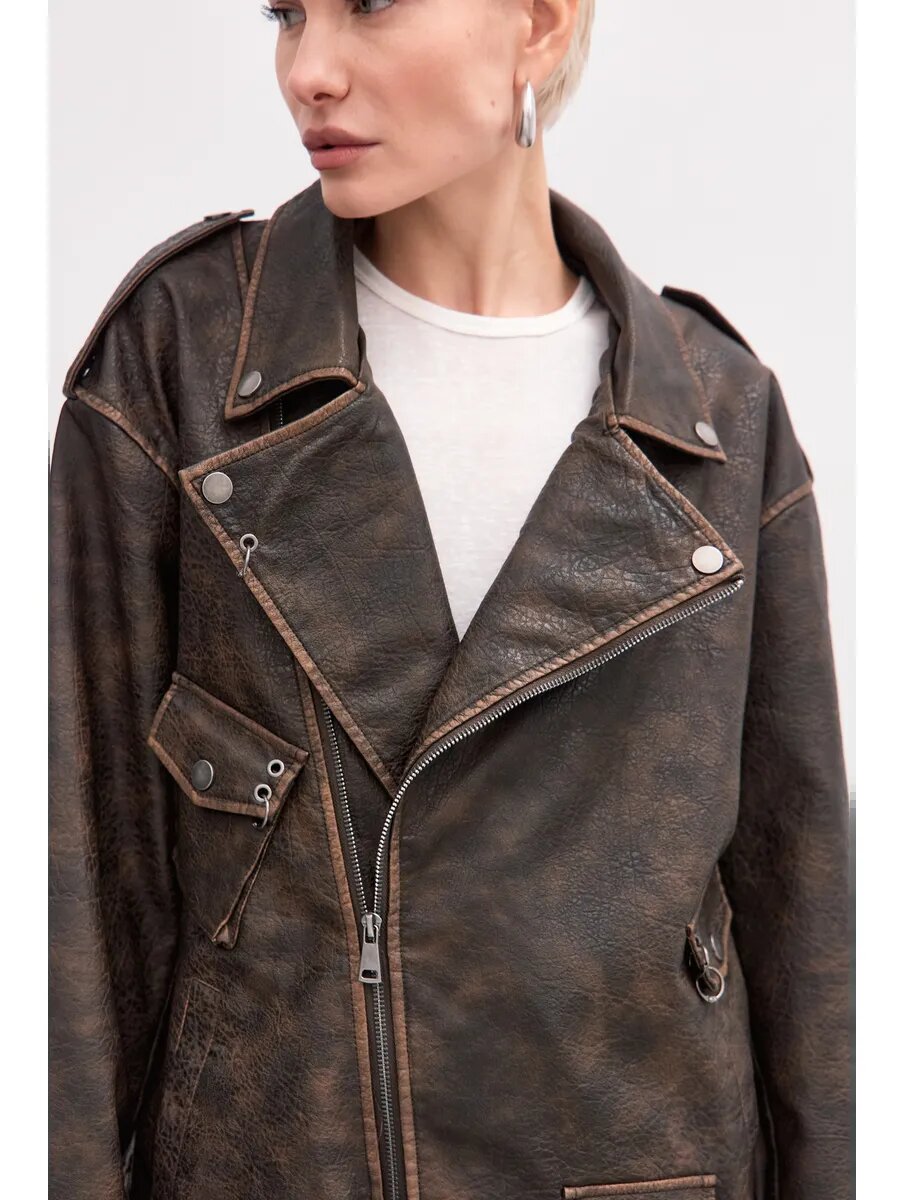 Коричневая кожанка-5.216₽ Размерный ряд 42-60 — универсальный вариант, который можно носить как в повседневной жизни, так и на более формальных мероприятиях.