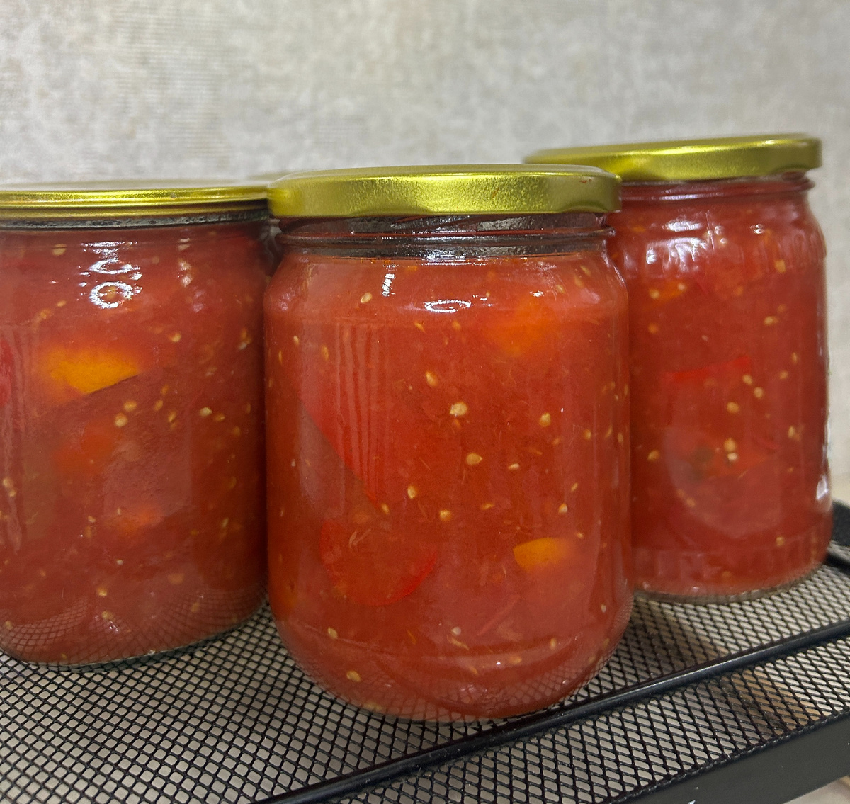 У Вас много перцев и помидоров, но вы не знаете, что с ними делать? Лечо!!! Предлагаю самый простой и вкусный рецепт. Вам понадобится: - перец болгарский- 1,5 кг; -помидоры- 1,5 кг; -соль- 2 ст.л.; -сахар- 3 ст.л.; -9% (столовый) уксус- 2 ст.л.; -масло растительное- 50 г. 1.Моем все овощи. Помидоры можно освободить от шкурки, можно ее оставить. У перцев убираем плодоножки и очищаем их от семян. 2. Помидоры измельчаем блендером или пропускаем через мясорубку. 3. Перцы нарезаем ломтиками или кольцами. 4. Получившееся пюре из помидоров отправляем в кастрюлю и доводим до кипения. Постоянно помешиваем. 5. Добавляем соль и сахар в указанном количестве. Не забываем помешивать! 6. Варим 15 минут, затем добавляем нарезанные перцы и наливаем растительное масло. После этого варим еще 15 минут. 7. За 5 минут до готовности добавляем уксус. 8. Общее время варки после закипания составляет 30 минут. 9. Разливаем в стерилизованные банки и закрываем. 10. Переворачиваем банки на крышку, накрываем ч