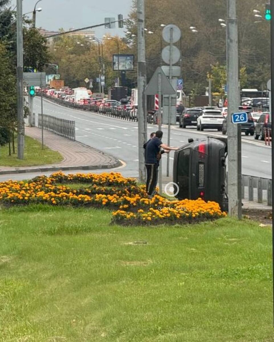 На эстакаде в Отрадном в сторону области автомобиль перевернулся и вылетел с проезжей части