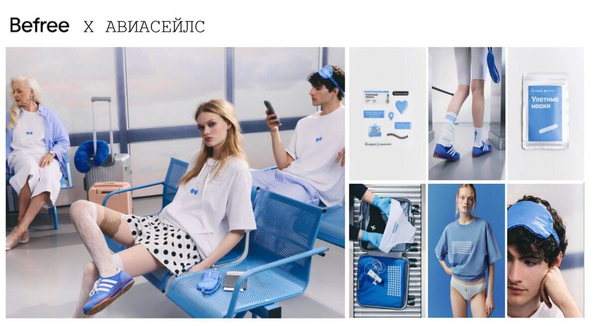 Befree × Aviasales Кейс, запущенный в отпускной сезон. Это возможность поддержать продажи не только fashion-бренда, но и привлечь внимание к сервису покупки авиабилетов в самый горячий сезон перелётов. Капсула проста и недорога по себестоимости — «набор путешественника»: футболки, бельё, носки, маска для сна в самолёте и бирка для багажа. Всё объединено фирменным синим оттенком Aviasales Cheap Blue, ставшим визуальным символом дешёвых билетов и спонтанных путешествий. #PROfashion_приглашает Галина Кравченко-Манюкова, «ГАЛИНА КРАВЧЕНКО-МАНЮКОВА | FASHION | КОНСАЛТИНГ»