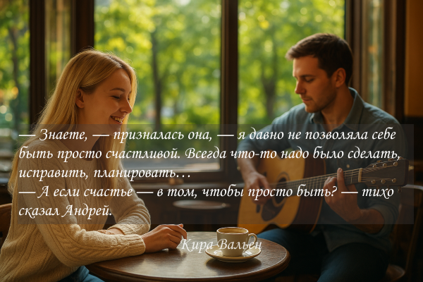 — Знаете, — призналась она, — я давно не позволяла себе быть просто счастливой. Всегда что-то надо было сделать, исправить, планировать…