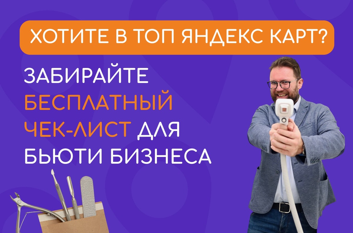 Бьюти-бизнес теряет клиентов каждый день 📉 Знаете почему? ➡ Карточка в Яндекс Картах настроена «для галочки». А ведь 80% клиентов выбирают салон именно в Яндексс Картах, даже не заходя на сайт или в социальную сеть. И вот самое обидное — конкуренты, у которых хуже сервис, могут забирать ваших клиентов только потому, что их карточка оформлена правильно. Чтобы этого не было — я подготовил бесплатный чек-лист по Яндекс Картам для бьюти-сферы и в нем вы узнаете: ⚫Какие ошибки убивают поток клиентов для ваших Яндекс Карт. ⚫Как поднять карточку в топ поиска и обогнать конкурентов и чтобы клиентышли именно к вам. ⬇ Забирайте чек-лист прямо сейчас — и прокачайте свою карточку в Яндекс Карт без затрат на рекламу