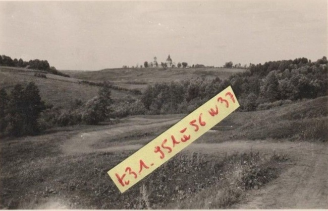 Фотография лето 1942 года. Вдали церковь Рождества Христова. Село Дросково, Покровский район, Орловская область. Оккупация фашистами села Дросково была до 13 февраля 1943 года с октября 1941 года. Приправочная книга 1615 года по г. Ливнам и Ливенскому уезду»: «Сельцо Архангельское, что прежде было займище, - под Дросковым лесом, на Брусовом верху, а в сельце церковь Архангела Михаила. Селом Архангельское, раньше называлось село Дросково. Фото 1 Фотография внутри храма Рождества Христова, август 1942 года, село Дросково, Покровский район. После освобождения села, когда начался ремонт дороги от Дросково до соседней деревни Сетенёво и не хватало строительных материалов, районное начальство не нашло ничего лучшего, как отдать распоряжение о взрыве церкви. Летом 1943 года она будет взорвана, а кирпич вывезут на дорогу Дросково - Сетенево. Так на 60 долгих лет лишили дросковчан любимого храма. Фото 2 Фотография, церковь Рождества Христова, село Дросково 28 августа 1942 года. Приход храм