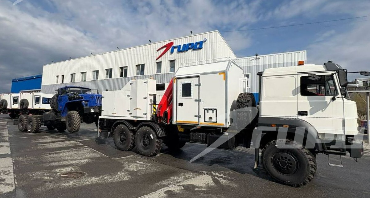 РЭМ с КМУ ИМ-15 N, которую изготовили специалисты завода, аналогов в России не имеет Фото: "Гирд". Автомобиль способен оказывать техническую помощь и ремонт, эвакуировать застрявшие или поврежденные машины. Краноманипуляторная установка позволяет производить погрузочные/разгрузочные работы без привлечения другой техники. Завод «Гирд» основали еще в 1994 году, как инженерную компания по раработке и поставе автомобилей семейства «УАОЛ». Сегодня «Гирд» - это завод, который производит технику для нефтегазового, коммунального, энергетического комплексов, транспортной логистики и аэропортов. За 30 лет предприятие впустило более 20818 единиц спецтехники.