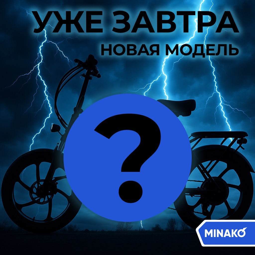 🔥 Поступила новая модель! Уже завтра она будет в продаже, и мы расскажем обо всех её особенностях! А кто угадает форму рамы и характеристики — тот получит 1000р на карту! Пишите свои предположения в комментариях 🤔 Электровелосипеды MINAKO