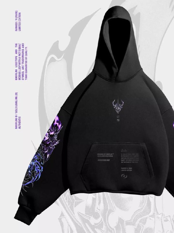 Как мы создавали лимитированное худи по «Соло Левелингу» — история разработки Разработка этой лимитки выпала на переходный период. Мы вовсю взялись за редизайны, которые еще успеем разобрать сегодня, но в итоге Соло мы уже создавали без холстов (хотя по плану они должны были быть) Мы долго обсуждали, кто будет на лимитке, даже успели нарисовать дракона для спинки... Просто хотелось нарисовать дракона) Но в итоге мы пришли к образу сильного, властного, почти царственного героя. Того, кто прошёл путь от самого слабого охотника до повелителя теней. Это и стало стержнем. С рукавами уже было проще: если мы рассказываем о сильнейшем, то на них логично показать силу, которую герой обрёл. Рассматривали кинжалы — символично, стильно. Но в итоге выбрали саммонов. Ведь сила Джин-Ву — это не только он сам, еще есть его легион. Особенно — четыре главных саммона. Каждый из них часть его пути, его истории. Потому что в «Соло Левелинге» за каждым из них стоит предыстория, личность, преданность. Он