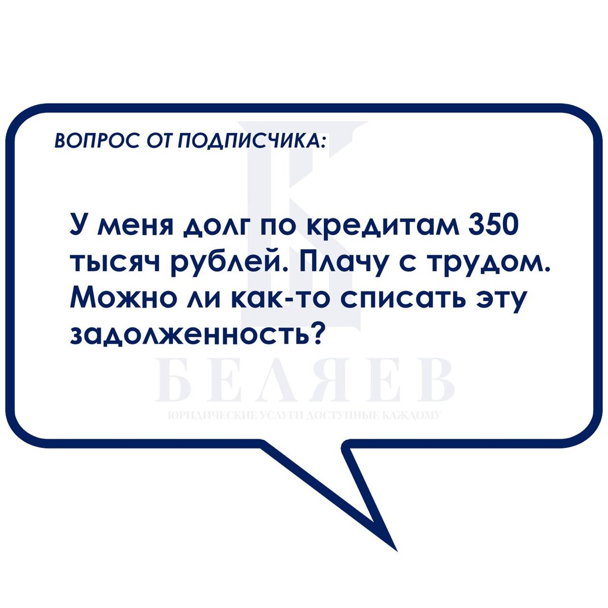 Можно ли списать задолженность по кредиту? ❌💰 Вопрос подписчика: «У меня долг по кредитам 350 тысяч рублей. Плачу с трудом. Можно ли как-то списать эту задолженность?» Ответ юриста: 🔹 1. Полностью списать долг можно только через процедуру банкротства (ФЗ-127). Долг от 500 тыс. рублей → банкротство через суд. Долг до 500 тыс. → возможно внесудебное банкротство через МФЦ (если нет имущества и исполнительных производств). 🔹 2. Другие варианты Реструктуризация долга (изменение условий кредита). Кредитные каникулы. Переговоры с банком (часто идут навстречу при официальном обращении). 🔹 Пример из практики Заёмщица с долгом 400 тыс. договорилась о реструктуризации: банк снизил платежи и продлил срок кредита. Это помогло избежать банкротства. 🔹 Советы юриста ✅ Сначала попытайтесь договориться с банком. ✅ Если долгов слишком много — рассмотрите банкротство. ✅ Никогда не берите новые займы для погашения старых. Заключение Списать долг можно только через банкротство, но есть и