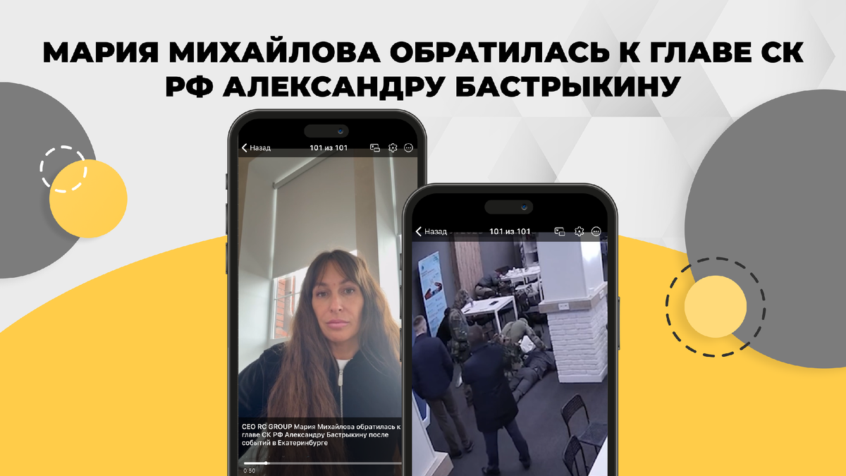 «Меня зовут Мария Михайлова, я руководитель группы-компании RC GROUP, и данное видеообращение направляется к главе Следственного комитета Российской Федерации Александру Ивановичу Бастрыкину.