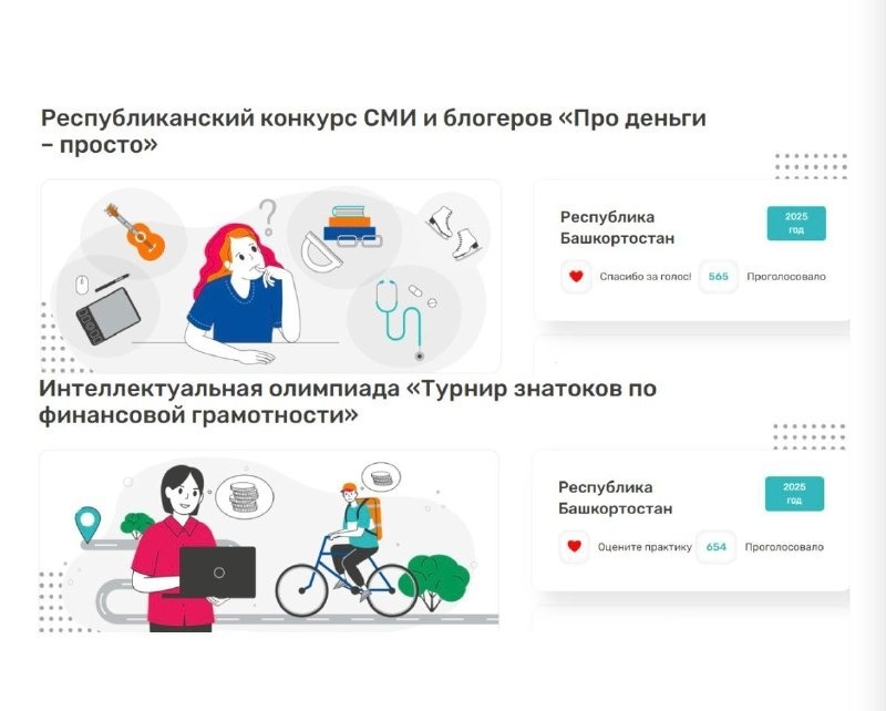 Опубликован каталог лучших региональных практик по финансовой грамотности Министерства финансов России. Победителей выбирали народным голосованием. Всего за победу боролись 156 проектов из 81 региона страны. В каталог лучших региональных практик Минфина РФ вошли два проекта из Башкортостана: республиканский конкурс СМИ и блогеров «Про деньги — просто» и интеллектуальная олимпиада «Турнир знатоков по финансовой грамотности». По словам и. о. министра финансов республики Светланы Малинской, включение в каталог —большая честь и признание труда многих людей, работавших над проектами. «Такие инициативы не только повышают финансовую грамотность жителей, но и создают условия для устойчивого экономического развития региона. Мы продолжим поддерживать и масштабировать успешные практики, чтобы как можно больше людей получили доступ к простым и понятным знаниям о финансах», — отметила она.