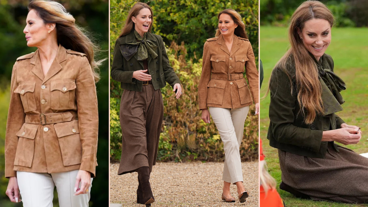 Первая леди выбрала осенние тона и надела главный тренд 2025 года - замшевую куртку - от Ralph Lauren. Она сочетала ее с брюками от Loro Piana. Мелания дополнила образ коричневыми балетками, украшенными фирменной золотой пряжкой бренда, - элегантный и практичный выбор для встречи на природе.