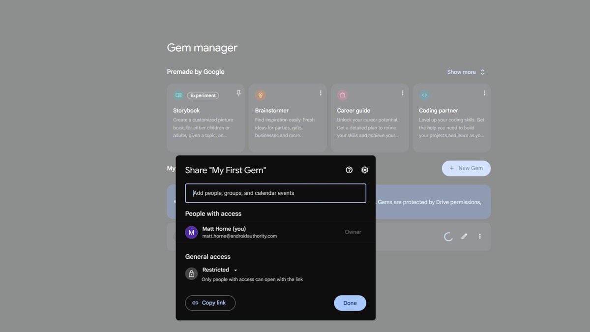 Недавно Google внесла изменения в политику конфиденциальности при генерации персональных пользовательских пространств в нейросети Gemini — Gem. Теперь Gem можно использовать совместно и делиться, как файлами в Google Документах. что недоступно в проектах ChatGPT. Google анонсировала эту функцию в своём блоге на прошлой неделе, и обновление уже доступно. Ранее Gem были доступны только создателю, независимо от целей использования. Как отмечает портал Android Authority, это нововведение вписывается в более широкую экосистему Google. Оно похоже на функцию совместного доступа к документам или таблицам Google. Чтобы поделиться Gem, в интерфейсе Google, в Gem Manager, появится кнопка «Поделиться». Следует нажать на эту кнопку, ввести имена или группы людей, с которыми пользователь намерен поделиться пространством, и определить уровень доступа — просмотр или редактирование. Также можно создать ссылку для совместного использования. Сообщается, что эта функция проста и даёт преимущество, которое