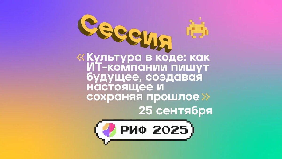 💡 Культура — это не только музеи и книги, но и код! Сегодня ИТ-гиганты всё чаще становятся не только разработчиками сервисов, но и хранителями культурного наследия. От цифровизации архивов до образовательных инициатив, от поддержки искусства до создания платформ для новых форм творчества — технологии становятся мостом между прошлым, настоящим и будущим. 25 сентября на РИФ-2025 пройдёт сессия «Культура в коде: как ИТ-компании пишут будущее, создавая настоящее и сохраняя прошлое». Почему инвестиции в культуру — это не просто CSR, а стратегический вклад в развитие общества? Как ИТ-проекты формируют культурный код и помогают бизнесу стать частью больших ценностей? 📌 На сессии обсудим, как технологии и культура взаимно усиливают друг друга и почему будущее цифровой индустрии невозможно без прочного культурного фундамента. 👉 Присоединяйтесь — посмотрим, как культура «работает» в коде и код — в культуре! Актуальная информация о программе форума: https://rif.ru/program