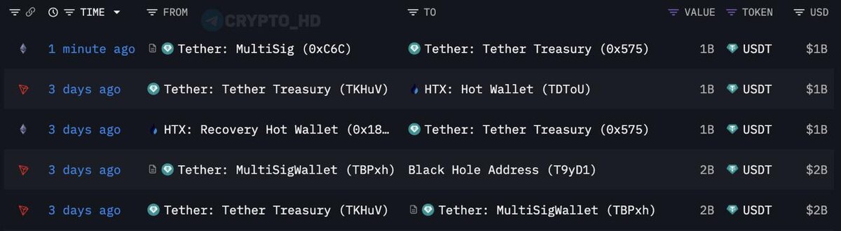 ❗️Arkham: В Tether напечатали свежий 1,000,000,000 USDT. Crypto Headlines