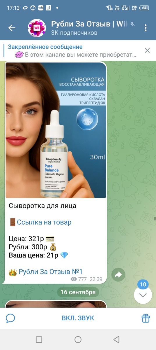 Здравствуйте, мои дорогие подписчики и читатели! Всех благ! 💕 Ой, разобраться и не запутаться в скидках на товары, всяких акциях, товарах за рубль, ( Озон), отзывах за подарочные рубли- это целая наука! И очень большое терпение! 💕 Акции имеют обыкновение быстро заканчиваться и не успеваешь угнаться за ними. И потом, надо ведь обязательно купить товар, а потом уж тебе деньги вернут. То есть у вас на руках должна быть определенная сумма денег, желательно побольше. Вайлдберриз возвращает подарочные рубли, перевести на карту их нельзя, можно тратить на товар. На днях купила сыворотку для лица. Там сразу обещали возврат 300 рублей. Заказала, получила. Что надо было сделать, чтоб получить деньги обратно. Снять видео с товаром, сделать 5 фото и написать комментарий. Все выполнила, отправила. Через день пришли деньги. Деньги эти переводить на другую карту нельзя, тратить надо на покупки с Вайлдберриз. Чтобы найти такие товары, купив которые, и выполнив требования торговой площадки в