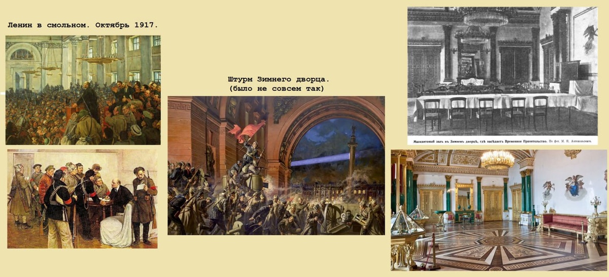 Утро 7 ноября (25 октября) 1917 год. По Невскому, как всегда, двигались трамваи. Магазины были открыты, и вообще улица имела как будто даже более спокойный вид, чем накануне. За ночь стены покрылись новыми прокламациями. «Вся власть Советам рабочих, солдат и крестьян! - Мира! хлеба! земли!». Газета «День» давал отрывочные сведения о событиях бурной ночи. Большевики захватили телефонную станцию, Балтийский вокзал и телеграф; петергофские юнкера не могут пробраться в Петроград; казаки колеблются; арестовано несколько министров; убит начальник городской милиции Мейер. День. На углу Невского и Морской трамваи не ходили, прохожие были редки, а света не было вовсе. Но, пройдя всего несколько домов, можно было снова видеть трамвай, толпы людей, ярко освещённые витрины и электрические вывески кинематографов. Жизнь шла своим чередом. У нас были билеты в Мариинский театр, на балет (все театры были открыты). Но на улице было слишком интересно. Мы пошли в Смольный. Ночь. Штурм Зимнего дворца. П