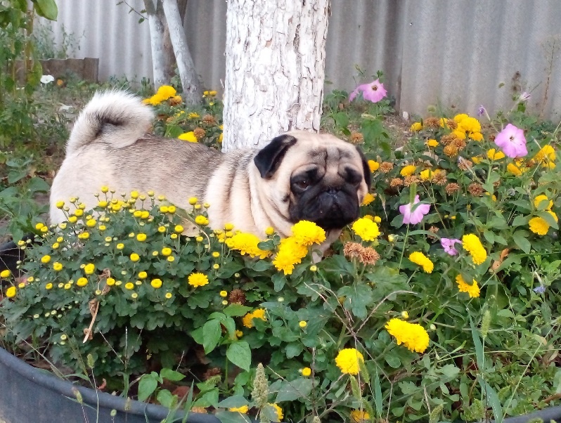 Дорогой дневник! У нас наступило "бабье лето" - днем тепло, а ночью очень даже прохладно, я бы сказал - холодно. Вот сегодня ночью, часиков в 12, пошел я на двор... посмотреть, всё ли там нормально. Посмотрел и... замерз! Не, не плачьте, не насмерть, а так, немножко... Частями. Захожу в дом и ка-а-а-а-к сговорю хозяину - ты мне либо шапку на голову и намордник особый на особую часть тела надевай, либо унитаз мне делай! Это было оступление от основной темы сегодняшнего очерка. Просто замерз малость... Замерз может и малость, а вот недоволен я целиком! Теперь по теме. Осень, деревья теряют листья, трава тускнеет в своем окрасе, цветы готовятся уйти на покой... Вот я и решил запечатлеть их рядом с собой! Чтобы у них осталась память обо мне, мопсе, который не всегда правильно поступал с ними... Побродил по двору, пофотографировался с цветочками, благо их у нас много. Хозяюшке привет и поклон! И глазкам моим радостно, и растениям приятно. Названия цветков я не знаю, да и знать-то не особо