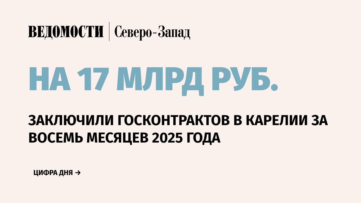 По итогам 8 месяцев 2025 г. региональные заказчики в Республике Карелия заключили порядка 10 000 госконтрактов на общую сумму около 17 млрд руб. Об этом «Ведомостям» в кулуарах форума «Карелия-2025» рассказала заместитель министра экономического развития Республики Карелия Ольга Бортник. По данным министерства, за полный 2024 г. было заключено более 28 000 контрактов на общую сумму 27,3 млрд руб., а за весь 2023 г. – более 23 000 контрактов на сумму 23,8 млрд руб. 💭 «Традиционно в конце года заключается достаточно большое число контрактов. Поэтому к концу 2025 г. их количество будет, по-видимому, соизмеримо с предыдущим годом», – отметила Бортник. ➡️ По ее словам, в Республике Карелия самые крупные госконтракты преимущественно заключаются в сферах строительства и здравоохранения. При этом трендом 2025 г. стал рост количества участников среди региональных субъектов малого и среднего предпринимательства. 📰 Подпишитесь на «Ведомости Северо-Запад»