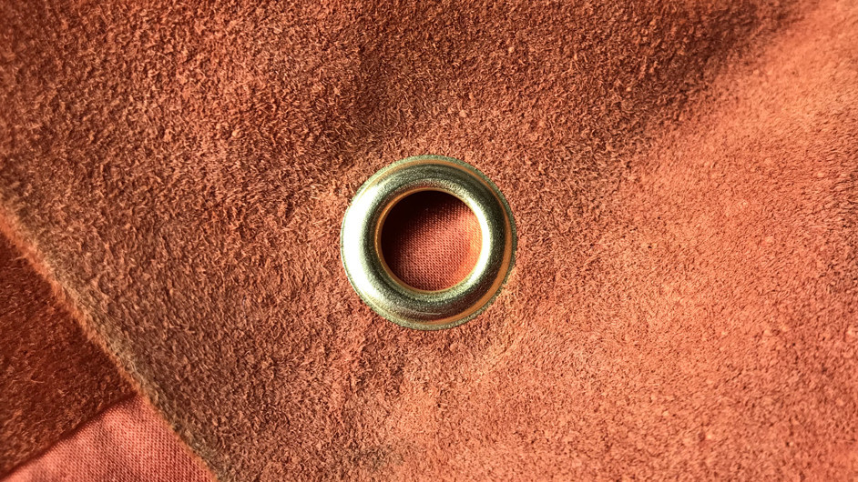 Люверсы состоят из двух частей, которые соединяют друг с другом. В результате, открытые срезы отверстий надёжно запаковываются внутри между двумя деталями люверсов.