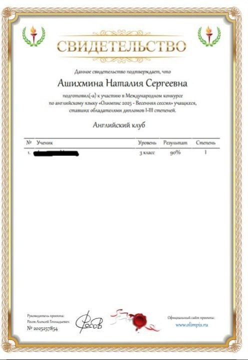 Репетитор английского онлайн, Ашихмина Наталия Сергеевна