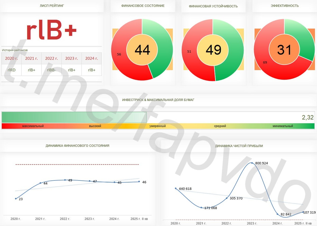 Лизинг под Контролом? ℹ️ООО «Контрол Лизинг» — ведущая лизинговая компания в России, входит в топ-10 по данным Эксперт РА. Компания работает с 2011 года в направлениях лизинга легковых автомобилей, коммерческого транспорта и спецтехники. Специализируется на финансировании таксопарков, магистральной техники и коммерческого транспорта с нулевым авансом. Контрол Лизинг — первая полностью цифровая лизинговая компания, предоставляющая комплекс инновационных решений для развития бизнеса в транспортной индустрии. ИНН — 7805485840 Так контора говорит сама о себе, а что на самом деле… Финансовое состояние ⭐️На конец II кв. 2025 года, ООО «Контрол Лизинг» — умеренно рискованное, значительно закредитованное, малоэффективное предприятие. Выручка в отчётном периоде составила 5 350.3 млн, чистая прибыль 107.3 млн рублей. ⭐️На 1 рубль собственного капитала приходится 17.25 рубля заёмных денег. Заёмный капитал обеспечен собственными резервами на 6%. Общая задолженность компании состоит из 24 285.9