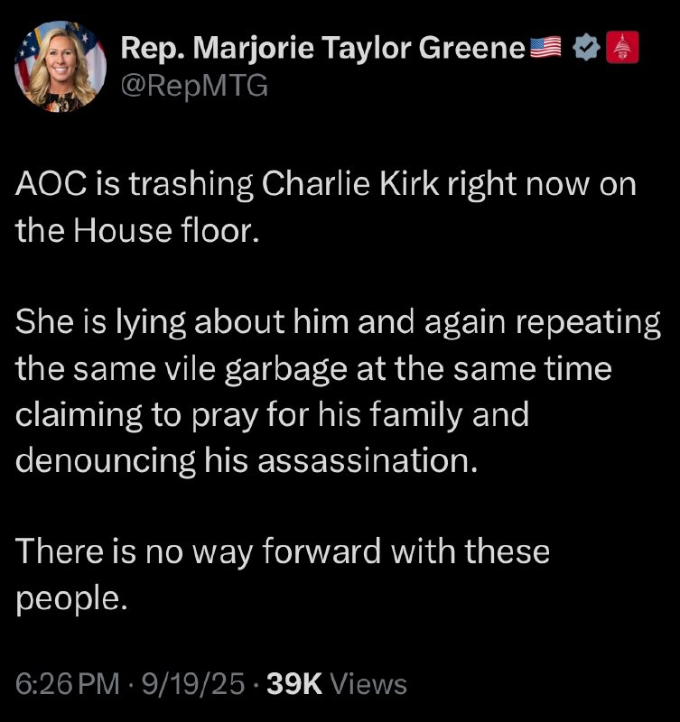 Slams AOC for ‘LYING’ about Charlie Kirk, ‘repeating the same vile garbage’