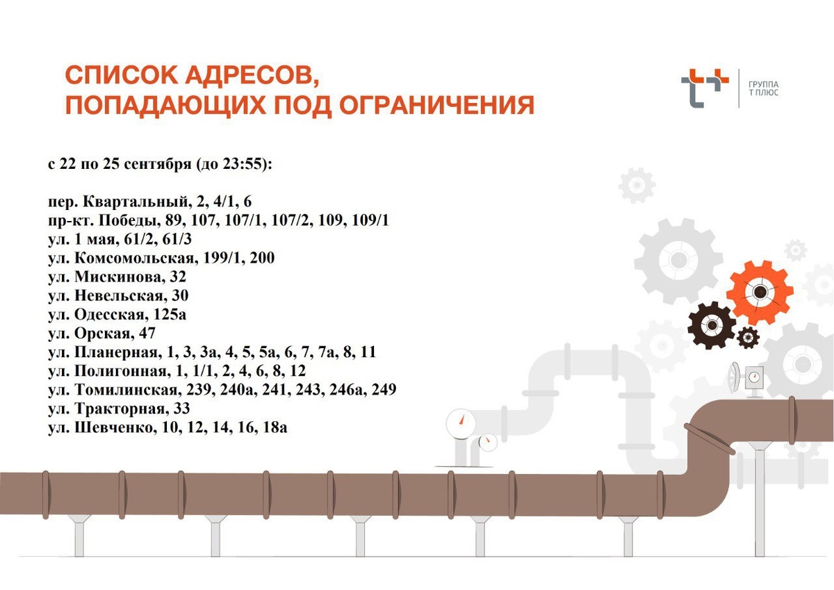 ❗️В Оренбурге горячую воду отключат с 20 по 25 сентября по следующим адресам