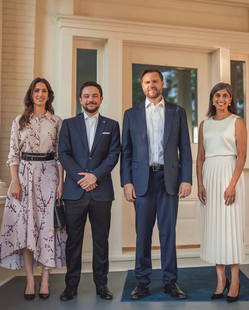 Ну просто какая-то неделя визитов! Вчера кронпринц Иордании Хусейн вместе с супругой, кронпринцессой Раджвой посетил банкет в Вашингтоне, организованный вице-президентом Джей Ди Венсом и второй леди Ушей Венс.