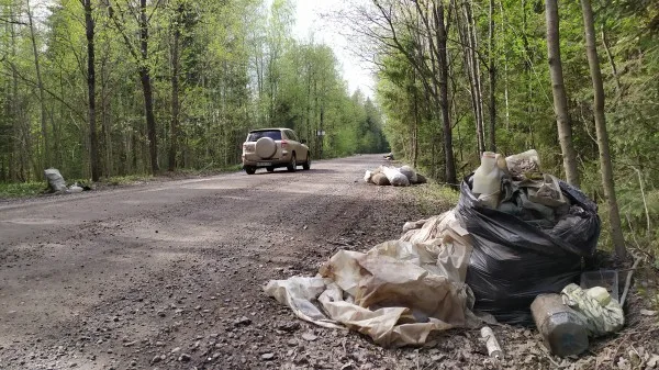 - Выброс мусора на дорогу или обочину — штраф 300 рублей