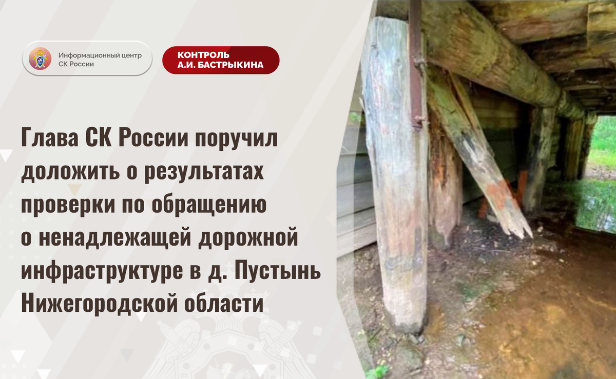 Глава СК России поручил доложить о результатах проверки по обращению о ненадлежащей дорожной инфраструктуре в д. Пустынь Нижегородской области