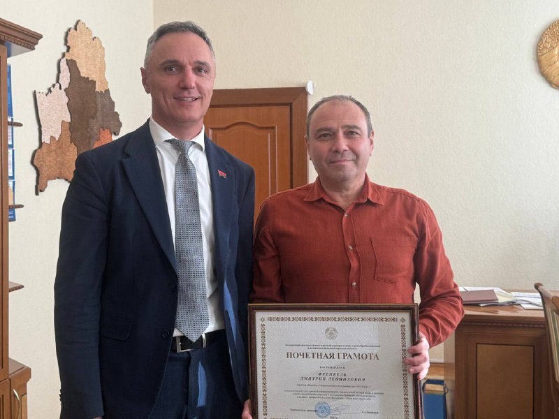 Белорусская деревообработка (Telegram) 📸 Фотофакт В канун профессионального праздника председатель концерна "Беллесбумпром" Александр Пшённый вручил Почетную грамоту концерна «Беллесбумпром» директору ООО «МЮНИКС» Дмитрию Френкелю. 💐Поздравляем!