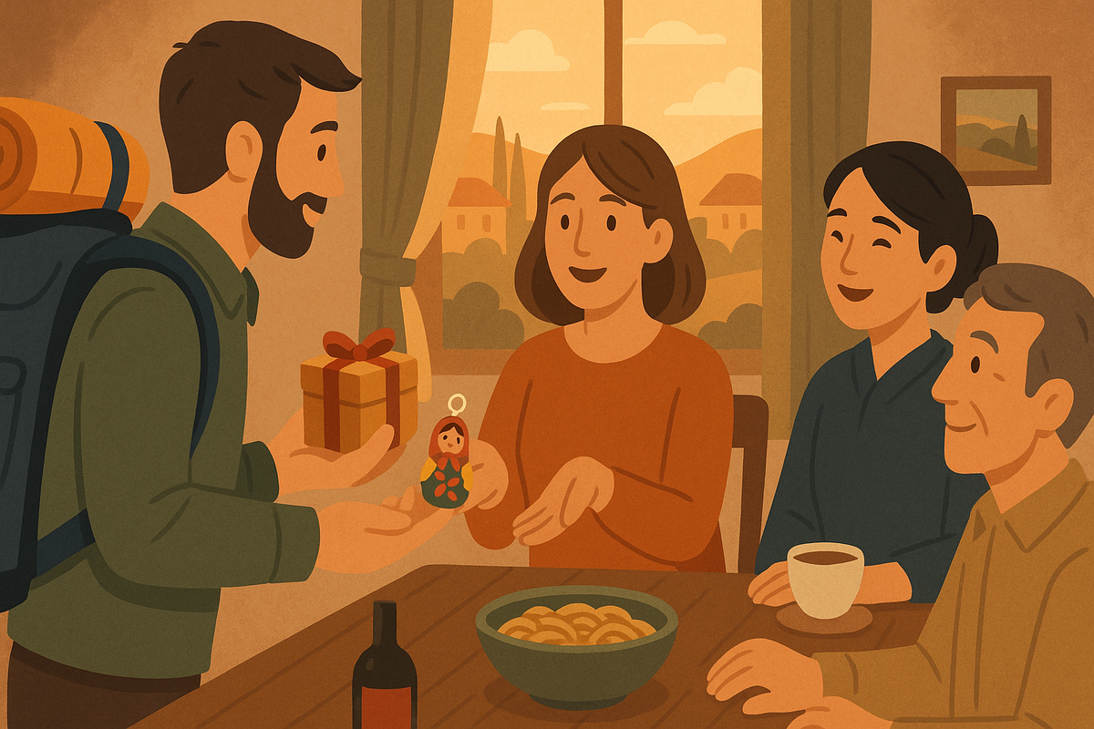 Есть вещи, которые понимаешь только с опытом. За годы дорог я ночевал в самых разных местах: от крошечных деревенских домов в Европе до шумных квартир в азиатских мегаполисах. И одна привычка всегда выручала — я никогда не приезжаю с пустыми руками. Однажды, в итальянской Тоскане, я достал из рюкзака небольшую коробку русских пряников. Подарок был смешным по размеру, но в глазах хозяина дома он стал ключом. На следующий день он пригласил меня на семейный ужин: за длинным деревянным столом мы ели пасту, пили вино из его погреба, а хозяйка делилась рецептами, которые не найдёшь в интернете. В Японии скромный брелок-матрёшка вызвал долгую беседу, а потом хозяйка неожиданно отвела меня в тихий чайный дом, куда туристы обычно не попадают. Подарок — это не про цену. Это способ сказать: «Я вижу ваш труд и вашу заботу». Такой жест помогает наладить контакт, особенно там, где язык не общий. Люди ценят внимание, и иногда в ответ открывают двери, о которых вы даже не знали. Из дома: В пути: Особе