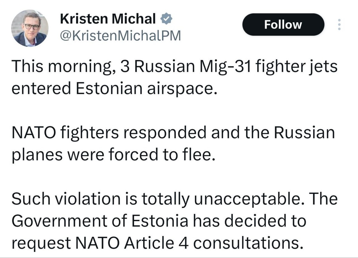 Estonian PM triggers NATO Article 4 after ‘suspected’ Russian airspace violation